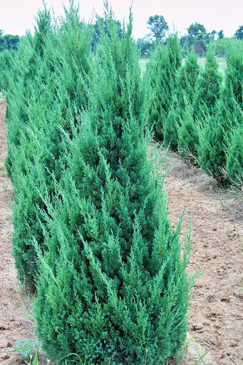 A pyramidal juniper with steely blue-green foliage. Suitable for accents or screens.