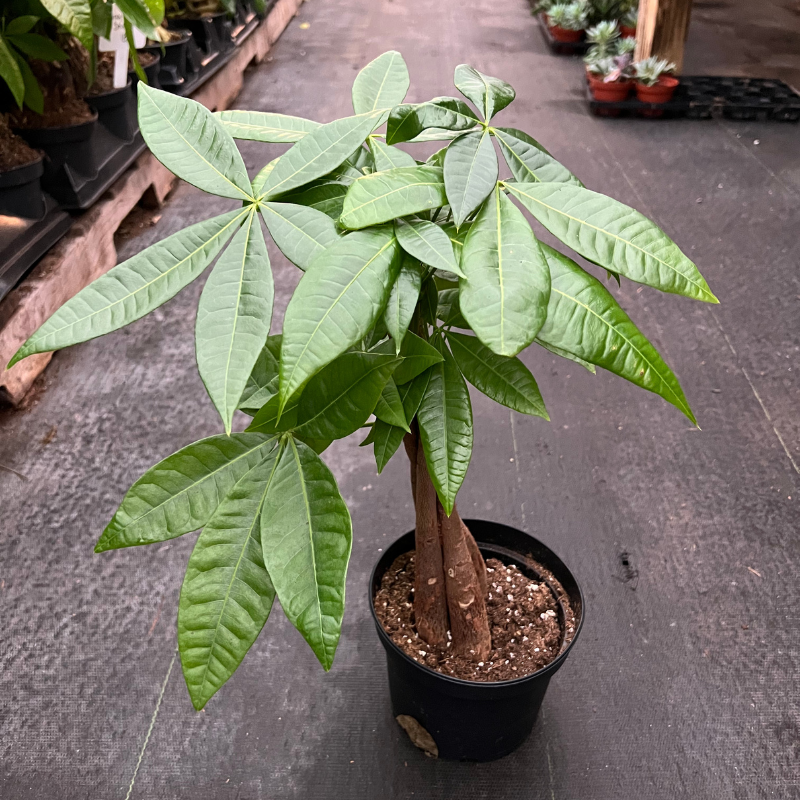 The Money Tree is an easy starter plant said to bring good luck and wealth. Its large star-shaped leaves and braided trunk give your home a unique touch and tropical feel.
