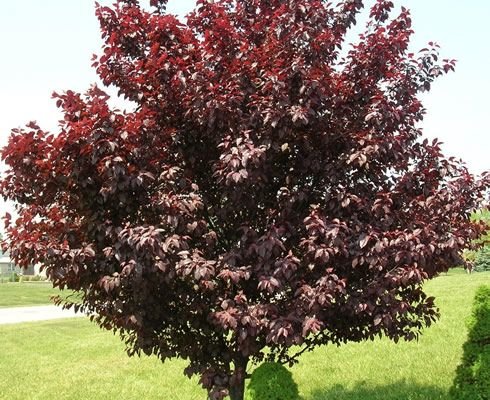 Purple Leaf Cherry Plum is a small ornamental tree prized for its striking deep purple foliage and early spring display of pale pink to white flowers. Its rich leaf color provides bold contrast throughout the growing season, making it a standout in any landscape.