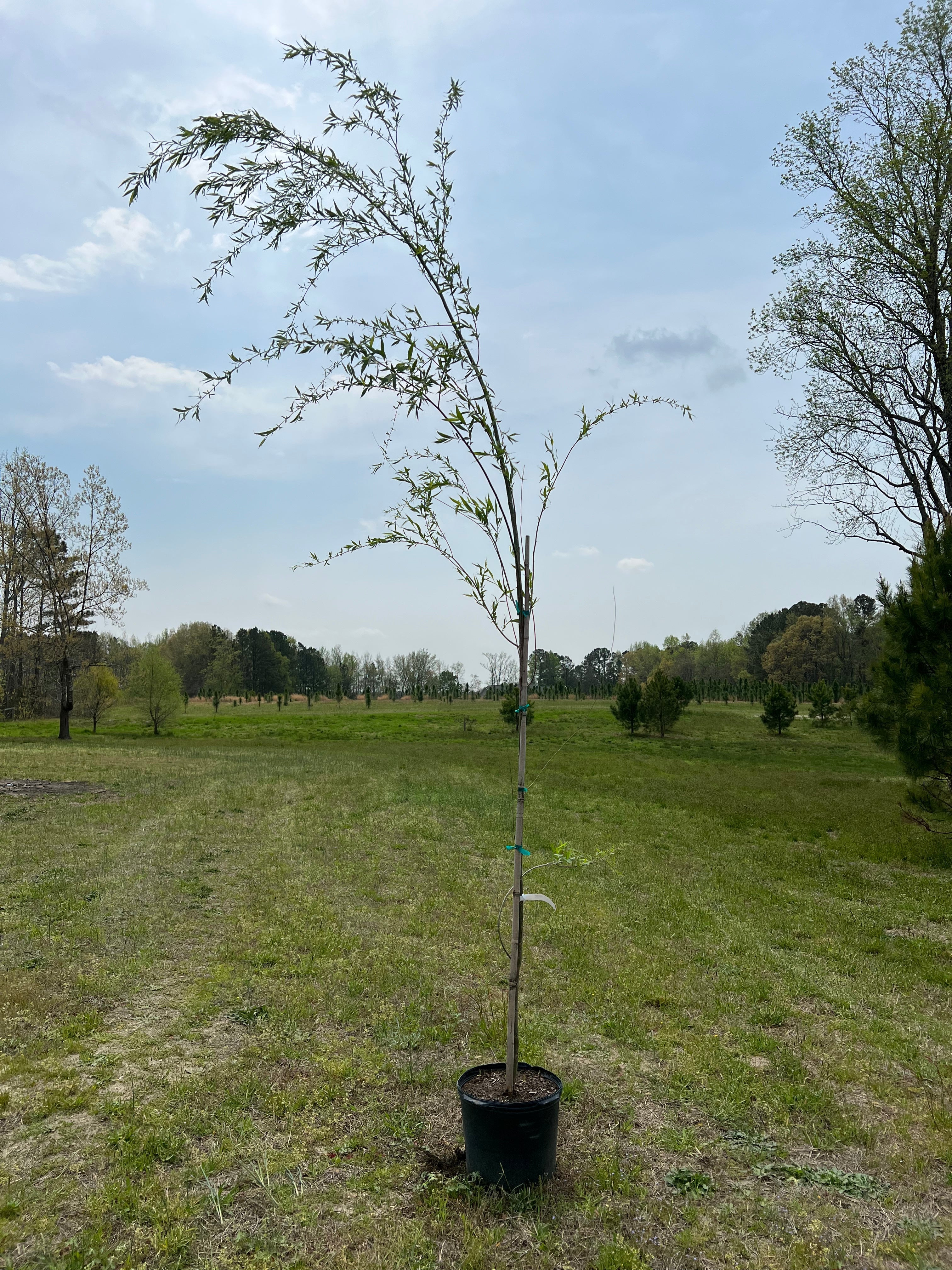 The Weeping Willow is a graceful, fast-growing tree with long, pendulous branches that sway elegantly in the breeze. Often planted near water, it creates a peaceful, romantic focal point and offers light shade with its fine-textured foliage.