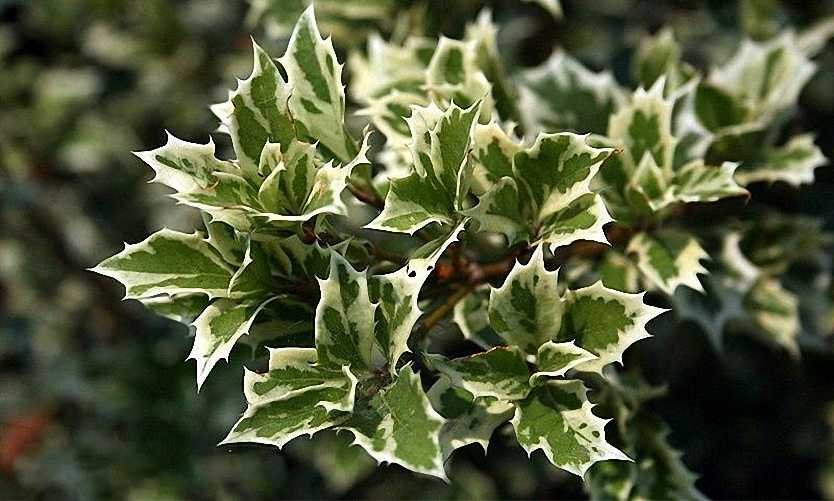 Holly Olive 'Variegatus' is an eye-catching evergreen shrub with holly-like leaves edged in creamy white. This variegated form of False Holly adds bright contrast to shaded gardens and produces fragrant white flowers in fall, offering both visual and sensory appeal.