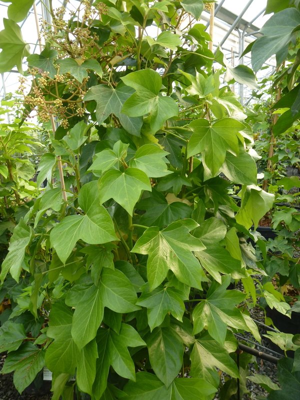 An evergreen vine with large, round, dark green leaves and vigorous climbing habit. Ideal for walls, trellises, or groundcover.